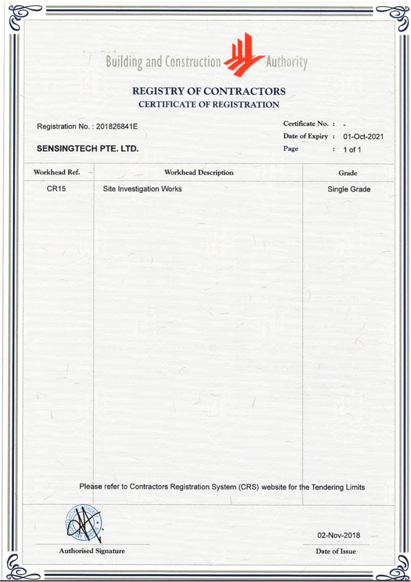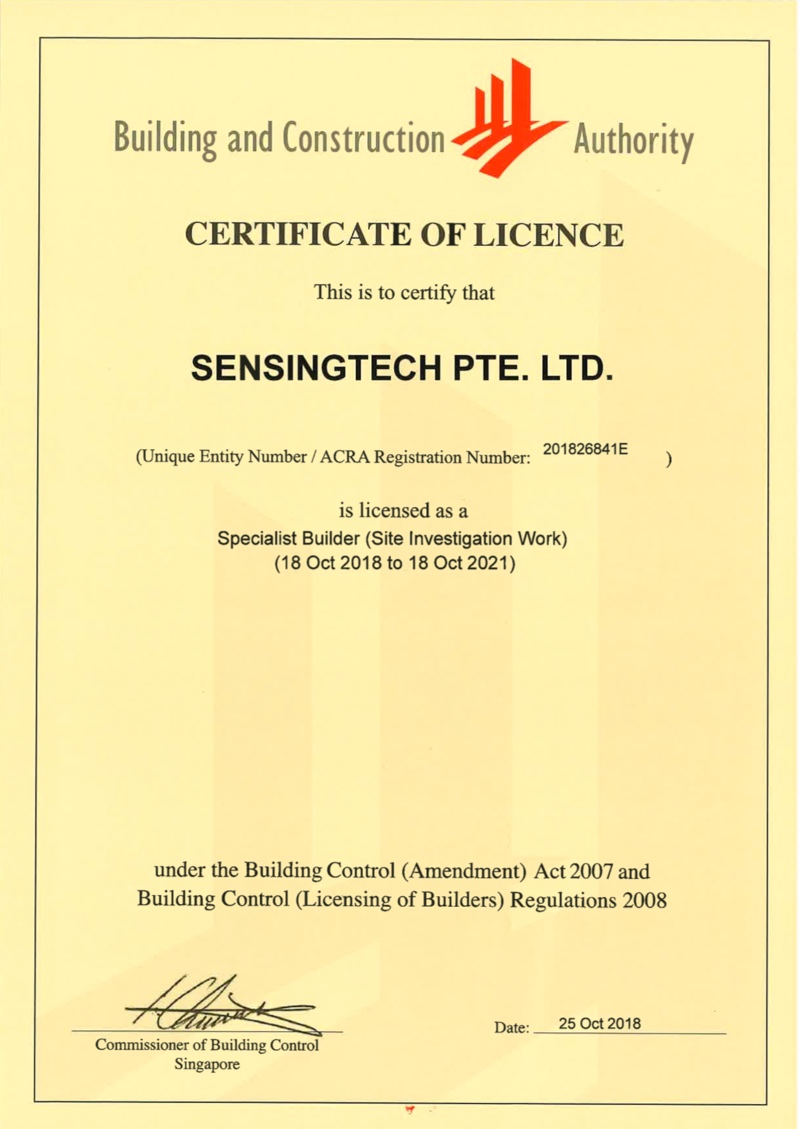 SensingTech is BCA registered CR-15 contractor with Bizsafe Level 3. We strongly believe that, an experienced team with client-oriented attitude and safety work culture are the keys to the project success.