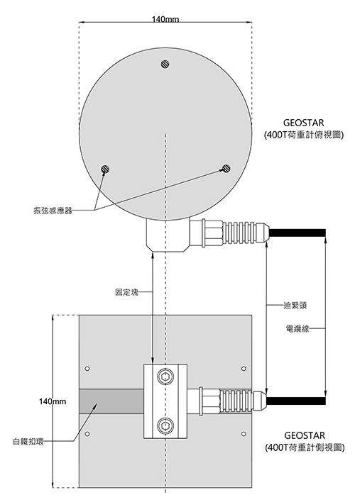 The Model 9910 vibrating wire support load gauge contains 3~6 vibrating wire sensors inside, which are installed in an alloy steel cylinder at equal distance around the axis, and are equipped with load bearing plates at the top and bottom. The vibrating wire sensors inside the supporting load gauge are connected to the readout or automatic recorder through multi-core cables, which can accurately and quickly reflect the preload the load gauge body is under.