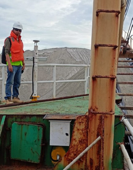 Soil discharge point is an important parameter in marine environmental studies to determine the dispersion and fate of sediment particles. A GNSS system can be used to accurately determine the location of the soil discharge point on the sea.